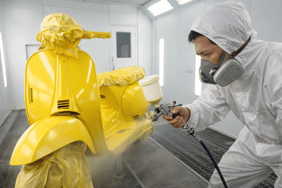 Susah cari tempat cat motor yang rapi dan masuk oven? Zenith Motor Jogja melayani repaint & body repair khusus motor premium (Vespa Matic, Kawasaki, Honda Big Bike). Kualitas cat pabrikan, awet, dan kilap maksimal.