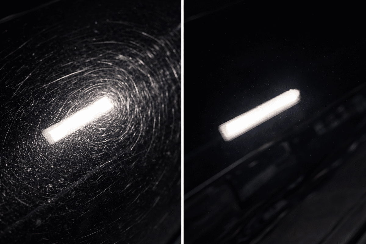 Anda membutuhkan layanan Paint Correction (Poles Mobil Profesional) di Zenith Motor. Kami akan mengikis lapisan pernis yang tergores hingga kembali rata dan memantulkan efek “kaca”.