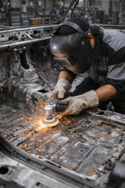 • Karat Tidak Mati: Karat seperti kanker. Jika tidak dipotong dan dilas pelat baru (hanya ditutup dempul), karat akan memakan pelat dari dalam dan menjebol cat baru.